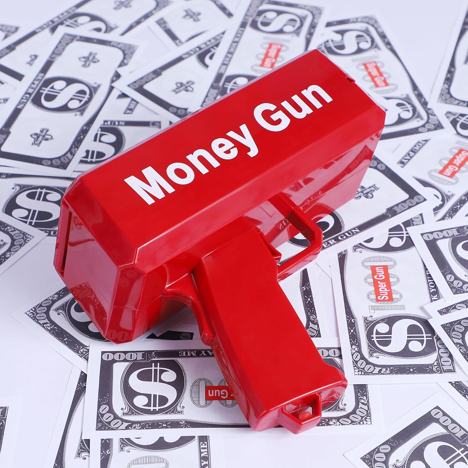 Super Money Gun Cash Cannon for Wedding, Parties and Fun – Includes 50 Fake Dollars Packaged securely in an attractive colour box and operates with 4 AA batteries(Not included). Whether you are children, adults or even the aged, as long as you would like to show your cool, you can make your dream come true. Comes with props money for practice fire, or for those months you're tight on cash. Feeds up to 100 dollar bills and sends them flying across the room. Great for distributing money, flyers, coupons and even business cards. A great addition to any bachelor/bachelorette parties, team builders, nightclubs, birthday parties, weddings and more. This is a Gun that can fire cash money! Cool toy for wedding party marketing cool makes your friend crazy about what you do! Cool guys are all playing fun with this gun on youtube, fackbook and Twitter, etc.